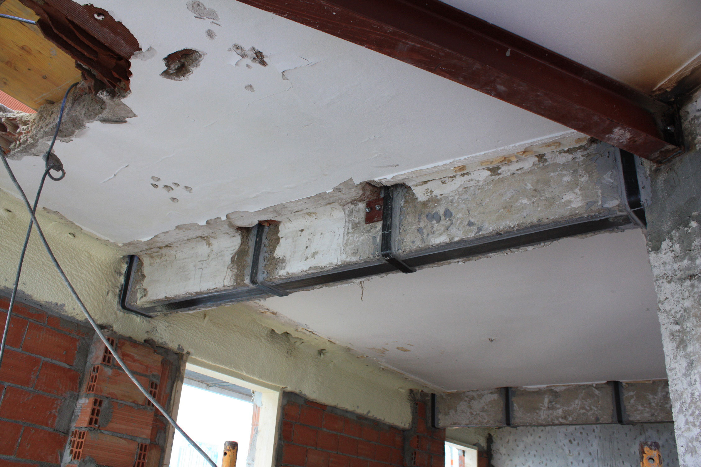 Renfort structural grâce à la application de fibres de carbone.